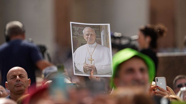 Catholic faithful gather in St Peter’s square to celebrate 70th birthday of Pope Leo XIV