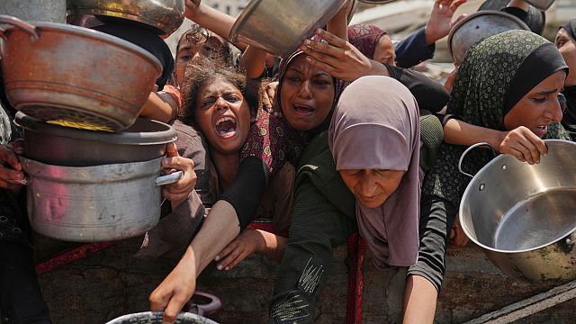 People in Gaza scramble for food aid as the death toll from hunger rises