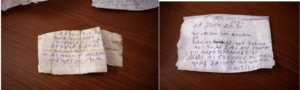 - ደቂ ኢረና ጃጋኑ ኢና፡ኸምኡ ኢና እንገብር፡ክንቅፅለሉ ኢና ሕጂ እውን፤ ደቂ አንስትዮ ትግራይ ፍረ ከምዘይህባ ክንገብር ኢና። ሕነ 1990 ዓ.ም ክንፈድዮ ሕጂ እውን አብ መስመር [ኣ…] (“Sons of Eritrea, we are brave,” the note reads. “We have committed ourselves to this, and we will continue doing it. We will make Tigrayan females infertile.”)
